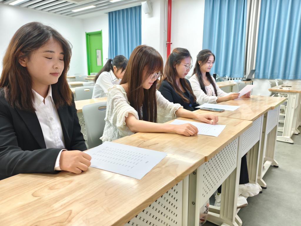 面试现场,参选同学依次进行自我介绍,面试官们紧扣介绍内容深入提问。同学们应答从容,态度认真,言语间尽显昂扬精神风貌与积极表现的决心。