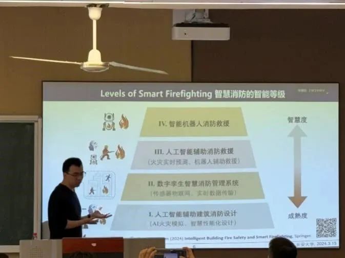 报告结束后,黄鑫炎教授耐心解答了同学们的问题,使同学们对人工智能驱动下智慧消防安全的科学研究有了更为深入的了解。