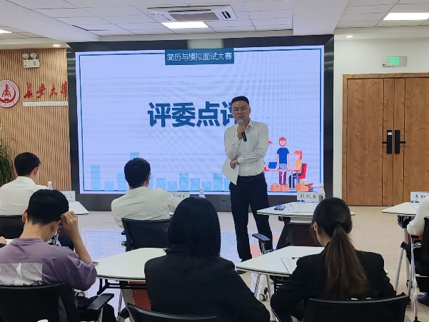 比赛环节结束后,评委团针对参赛选手的综合表现给出了细致专业的现场点评。一方面评委老师肯定了长大学子学习生活中积累的出众才能、综合能力和丰富经历,另一方面,也一针见血地指出了选手们亟待改进的不足之处,并就简历制作和面试中基本原则和技巧提出了宝贵的意见和建议。
