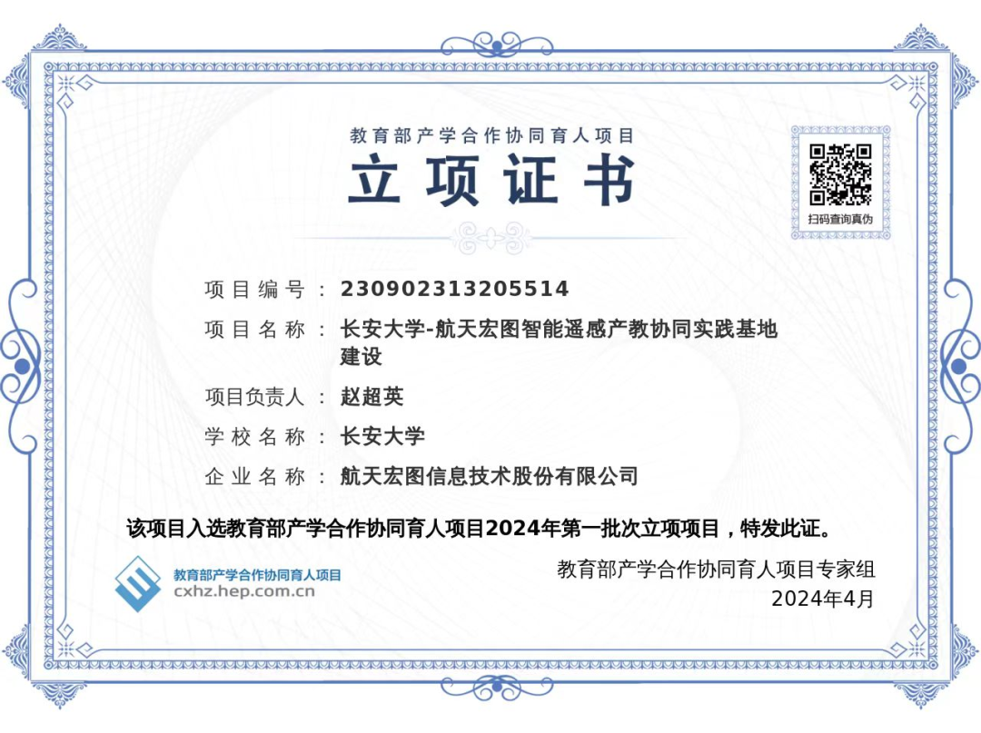 -航天宏图智能遥感产教协同实践基地建设》项目成功获批立项。