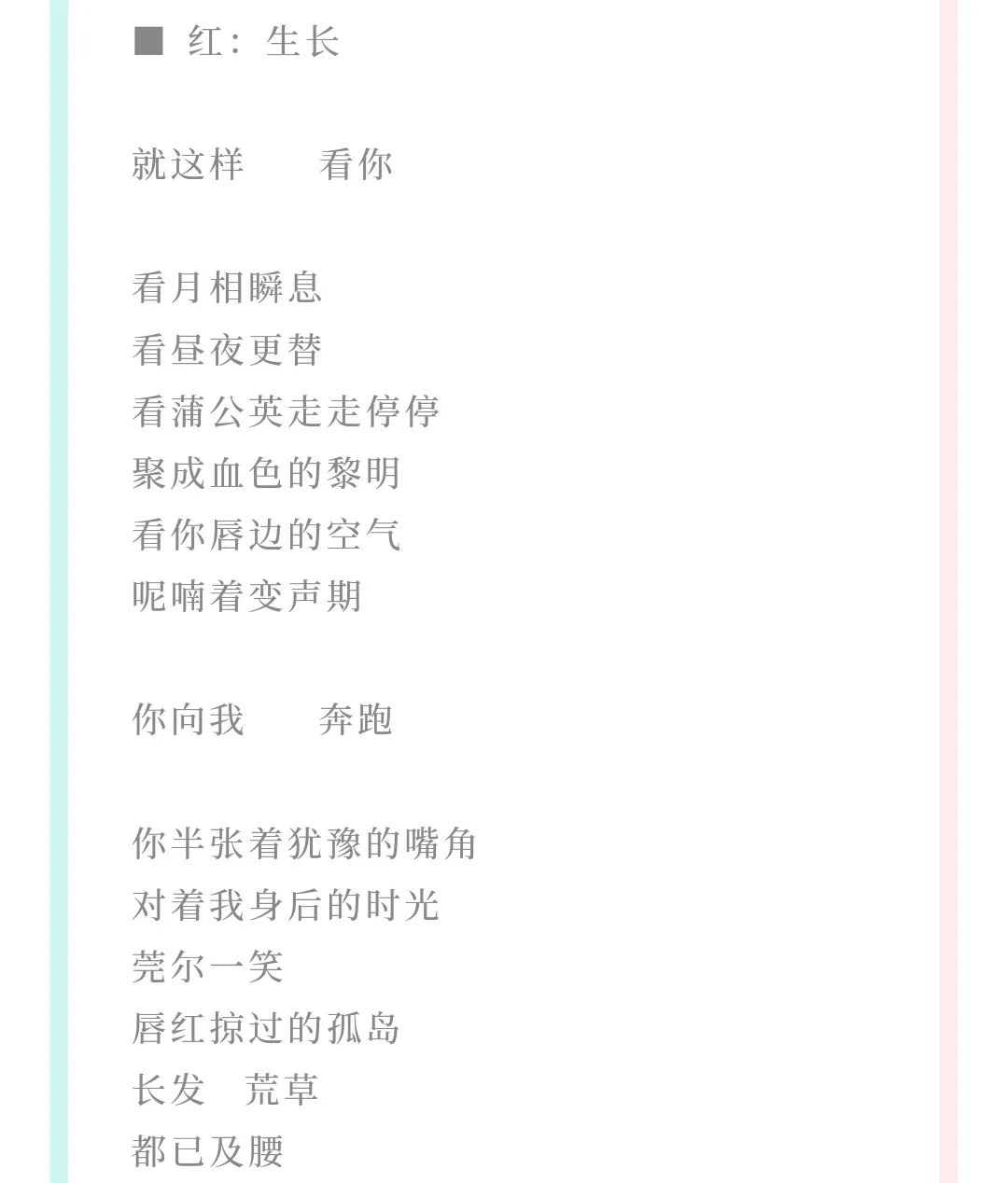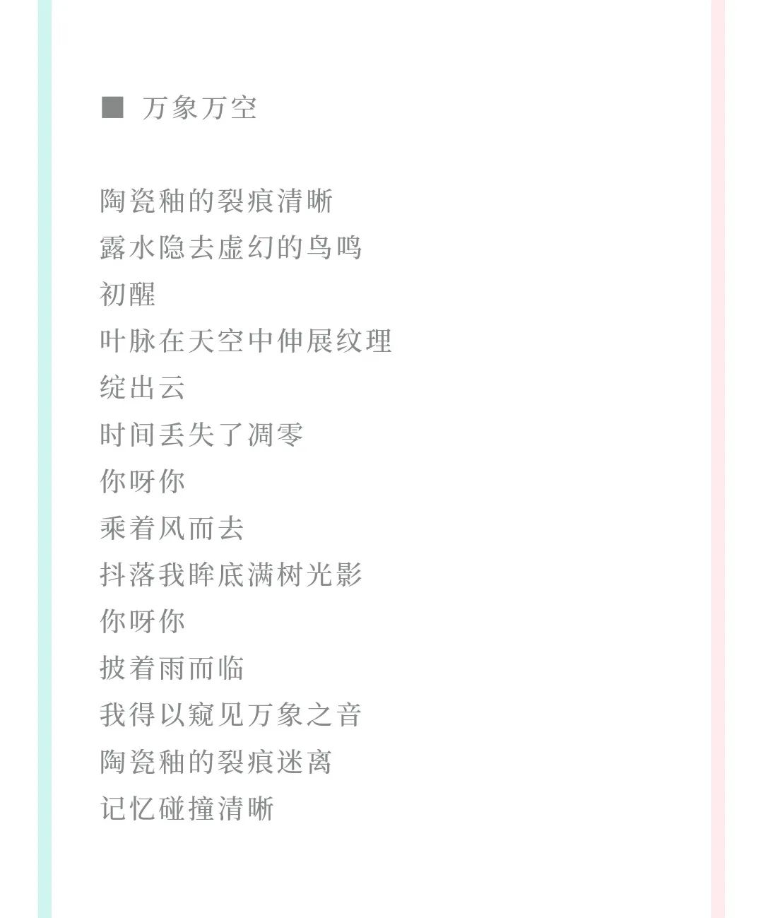 仅一名入选)。诗作《摆渡人》中的一句诗“远方除了遥远和你 / 一贫如洗”更是被选为该期经典名句。
