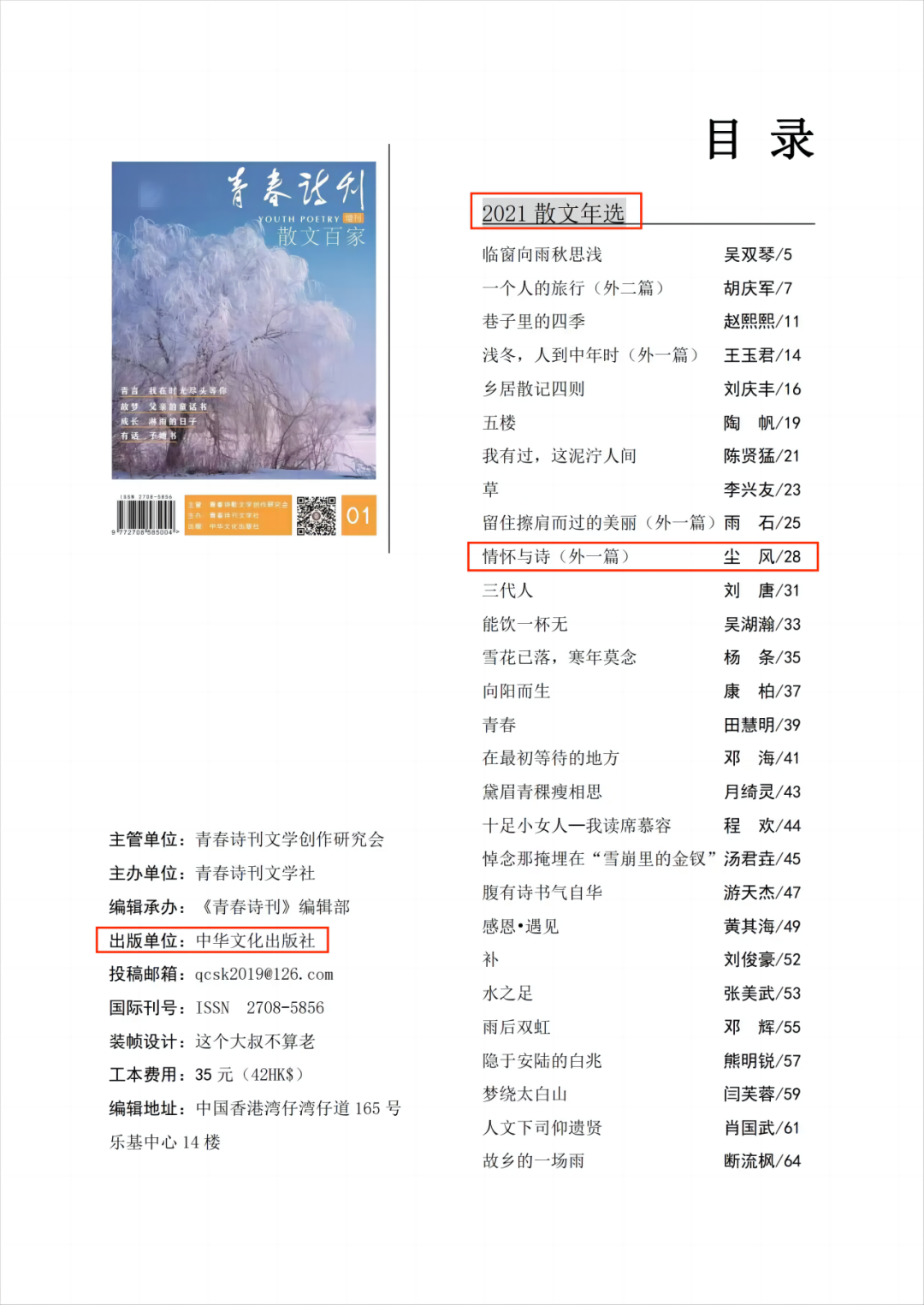 2021年6月,中国最优秀的公益性诗歌丛刊之一《青春诗刊》面向全国高校大学生发出征稿启事,他了解到后,心中的第一念头就是要把“长安”“文学”“青年作家”等诸多关键词带到更高更广的平台上去。于是,他潜心创作,不断打磨润色自己的文字。经过层层选拔,他以优秀大学生诗人身份入选其“大学生诗潮”专栏,同时,以17直播