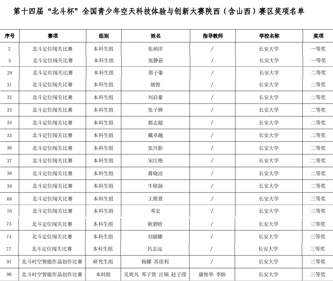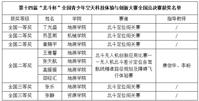 第十四届“北斗杯”全国总决赛长大学子获奖情况