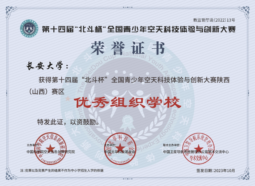 荣获第十四届“北斗杯”陕西(山西)赛区“优秀组织学校”