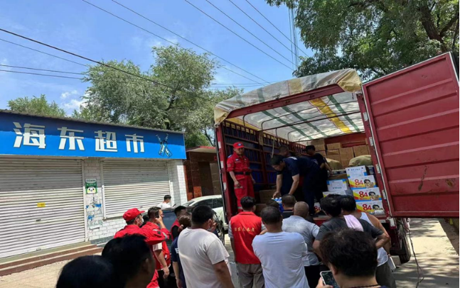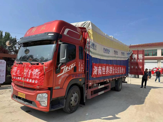 基金会车辆运送物资到达灾区