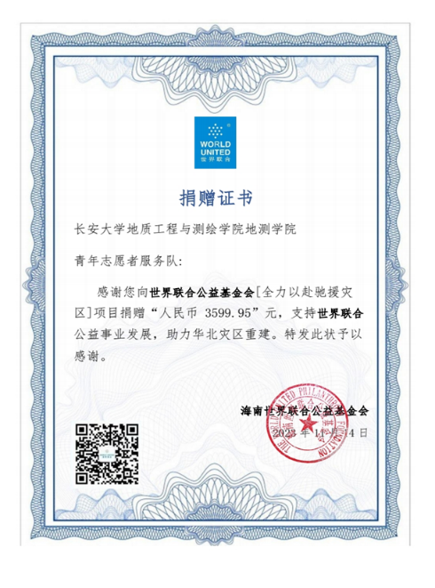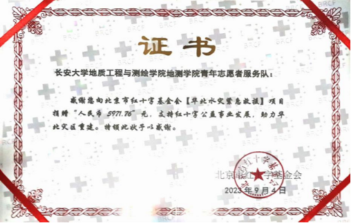 受台风“杜苏芮”影响,华北地区在7、8月遭受严重汛灾。地测青年志愿服务队积极响应国家号召,第一时间联系基金会,组织全校开展爱心募捐活动,为受灾的华北灾区提供援助。