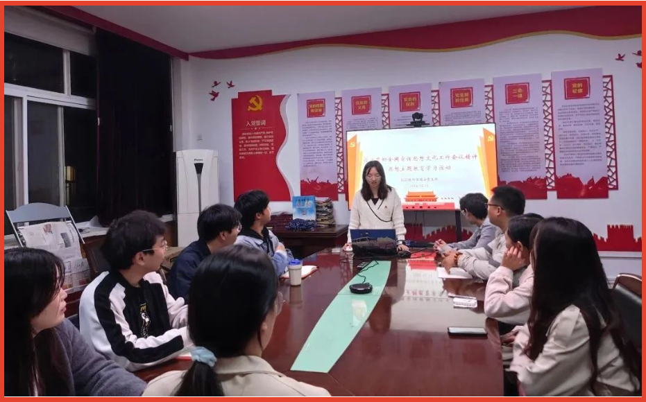 随后,支部书记周梅带领大家深入学习了全国宣传思想文化工作会议精神。支部成员认真学习了会议内容,深入理解了宣传思想文化工作的重要性。重点强调了在全国宣传思想文化工作会议首次提出的习近平文化思想以及习近平总书记提出的“七个着力”的要求。