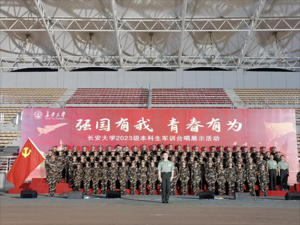 以“强国有我,青春有为”为主题的2023级新生军训合唱展示活动在北校区东区朝晖体育场顺利举行。