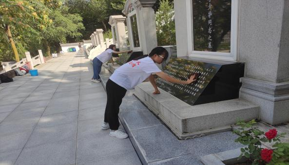 活动伊始,实践队成员和陵园工作人员进行了详细的交流,了解陵园的产生、发展历史和陵园烈士的生平,交谈结束后在工作人员的指导下开展了各项活动。首先,实践队成员们怀着无比崇敬的心情瞻仰了英雄烈士纪念碑并向革命烈士敬献鲜花、行礼悼念;紧接着实践队成员们拿着工作人员分配的清扫工具,按照要求逐一对烈士纪念碑和陵园进行了清扫活动,在进行清扫活动的同时也更深入地了解了烈士们的生平。