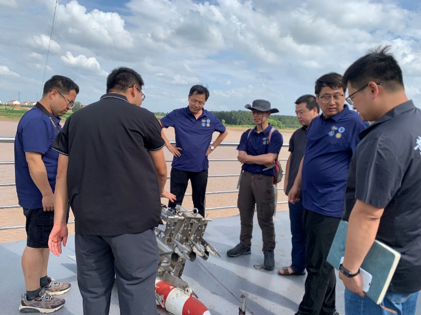 实践活动的第三站是山东利津水文站。利津水文站位于山东省东营市利津县利津街道刘家夹河村,东经118°18',北纬37°31',是黄河上最下游的一个水文站,黄河入海的控制站。水文站测验项目主要有水位、流量、含沙量、泥沙颗粒级配、水温、气温冰情、水质等。座谈会上,科考队员与利津水文站的工作人员就水文监测和数据分析等方面进行了深入交流。随后,科考队员参观了利津水文站的实际工作现场。通过实地考察,队员们深入了解了水文站的设备和技术应用情况,对水情数据的收集、传输和处理过程有了更直观的认识。