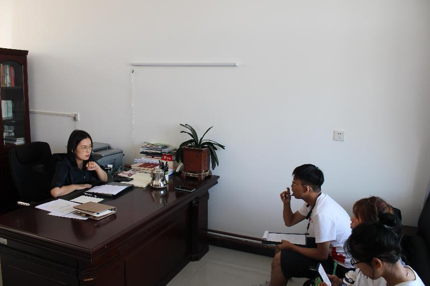揭牌仪式结束后,周文东主任带领实践队成员参观了高西沟村党建荣誉室,借此机会,实践队员也就高西沟村发展的瓶颈、高西沟精神的内涵等问题对周文东主任开展了访谈,周文东主任对这些问题一一做了详细解答。