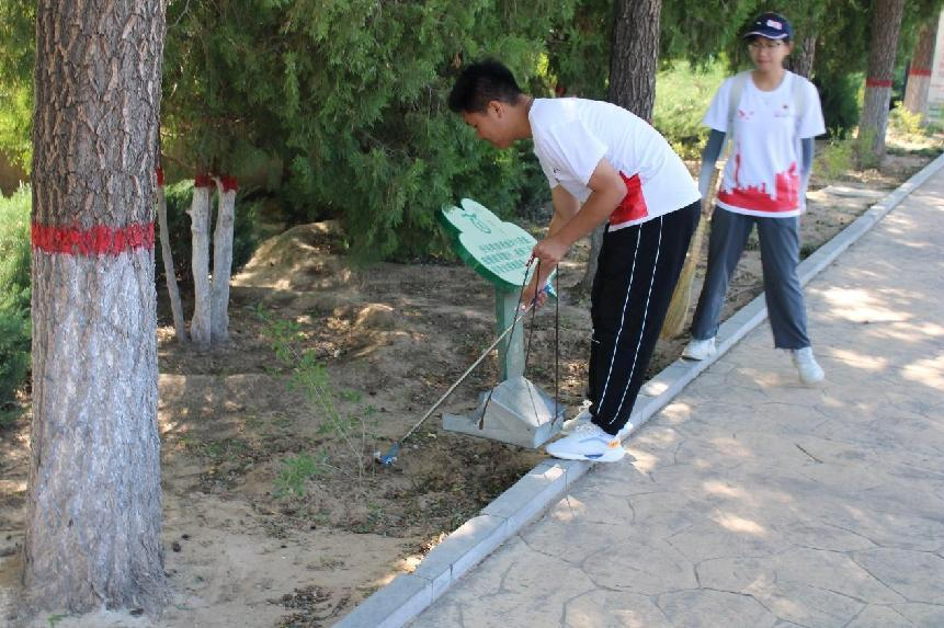 图为实践队成员在拾捡垃圾