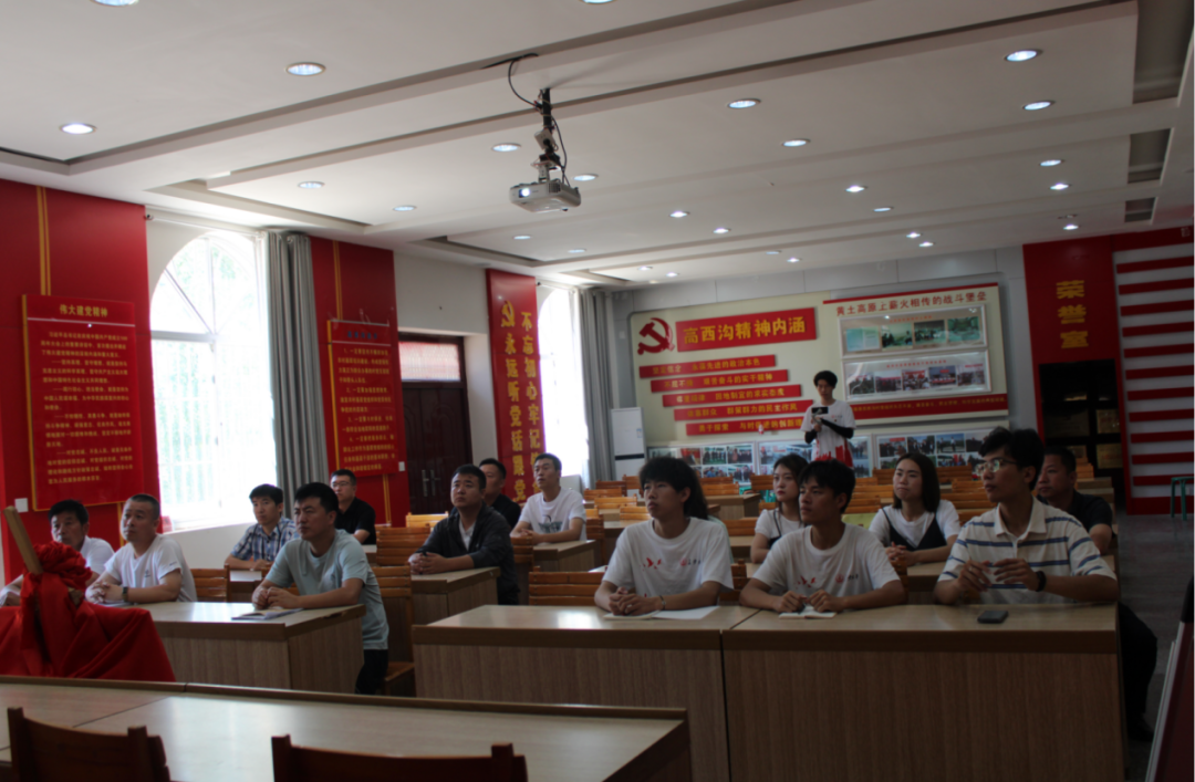 7月10日-7月13日,实践队成员与米脂团县委书记鲍雪娇汇报完工作计划与行程安排后,搭乘公交来到了“陕北小江南”--高西沟村,沿途绿意盎然,树木茂盛,全然不见昔日光秃黄土的面貌。随后,实践队成员在讲解员的带领下参观了高西沟村水保生态教育基地,了解了高西沟村生态治理的艰苦历程及伟大成果,见识了高西沟村四任领导班子三代人“敢叫日月还新天,誓把山河重安排”的胆识与气魄,学习了“坚持不懈、与时俱进、协调发展”的新时代高西沟精神,对高西沟村为什么能实现华丽转变有了更深的感悟。