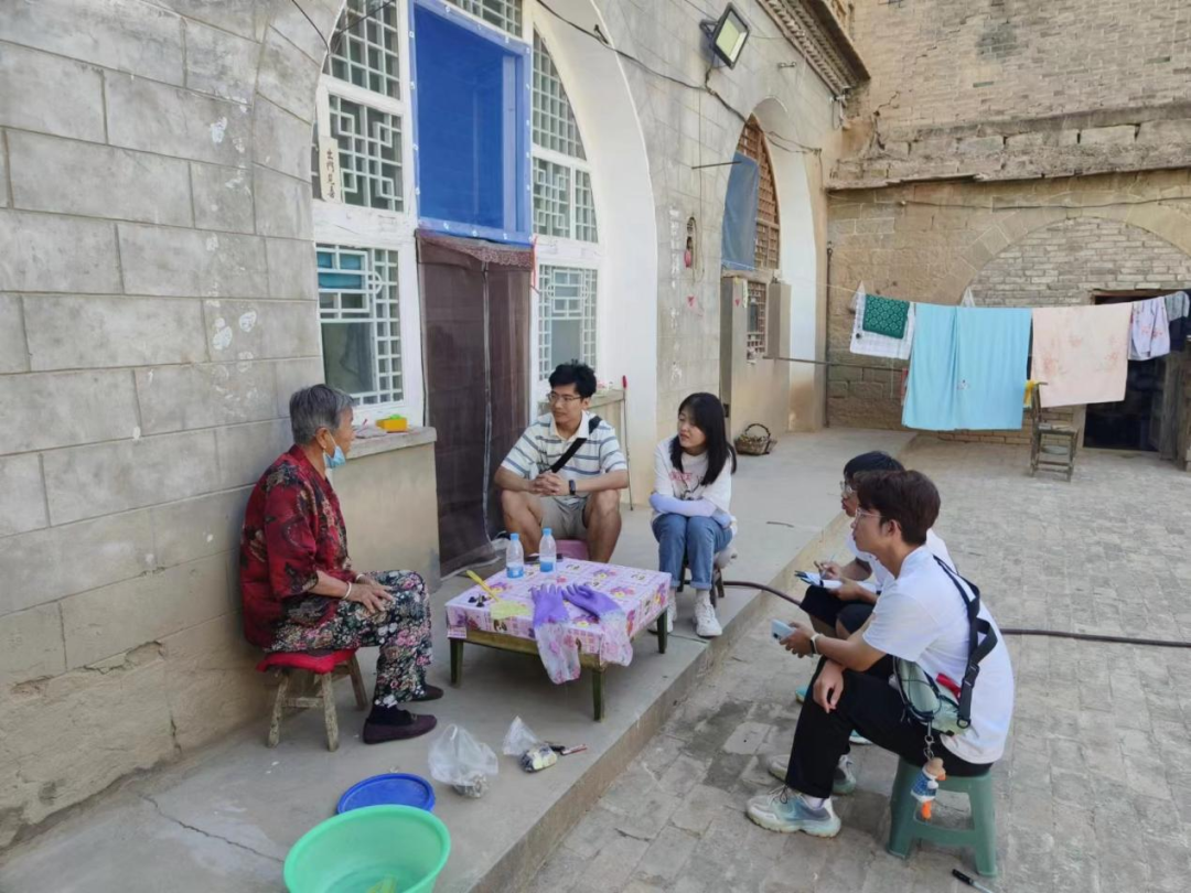 图为实践队成员与高家砭村村民进行交谈