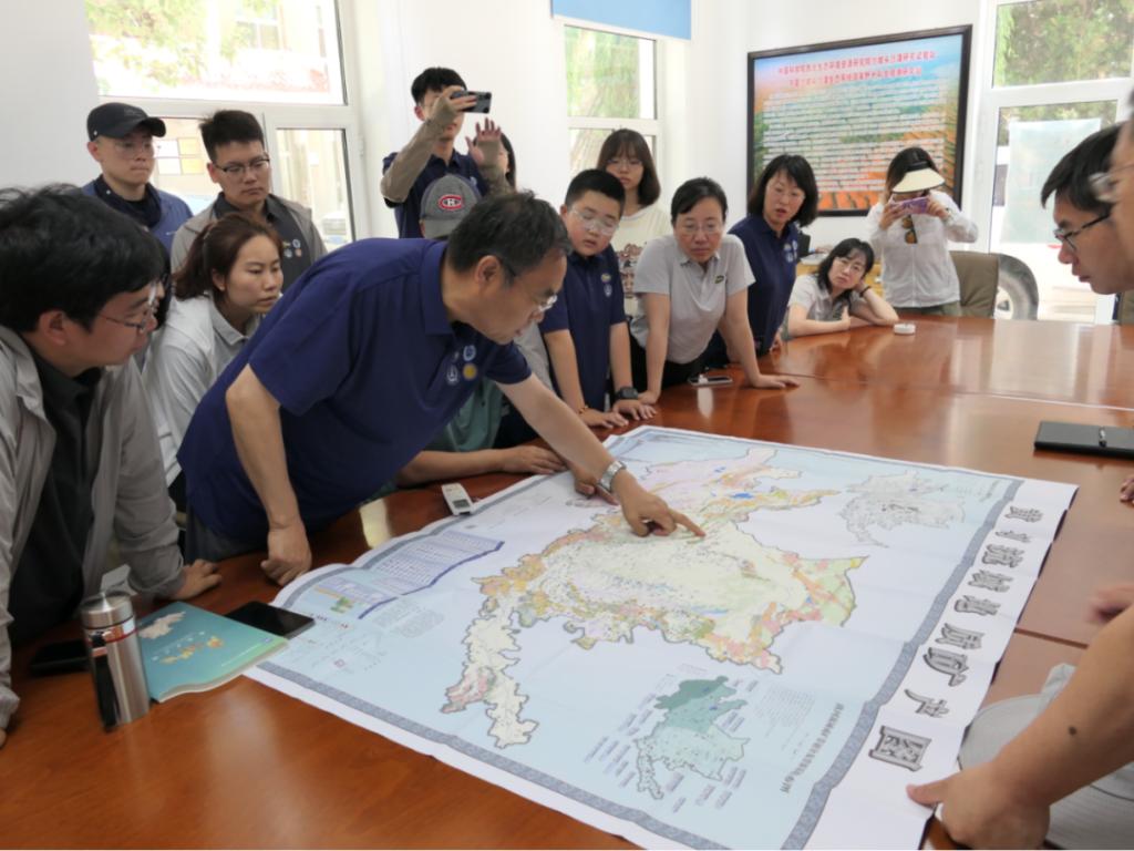 王炳尧工程师系统地展示并讲解了沙坡头地区的自然地理概况,沙坡头站的建站背景、科研工作进展、科学贡献、治理示范、国内外影响、人才与科普教育等情况。孙婧尧助理研究员为科考队讲解了沙坡头站最新的研究进展,并与科考队员讨论了可能的实验方法。