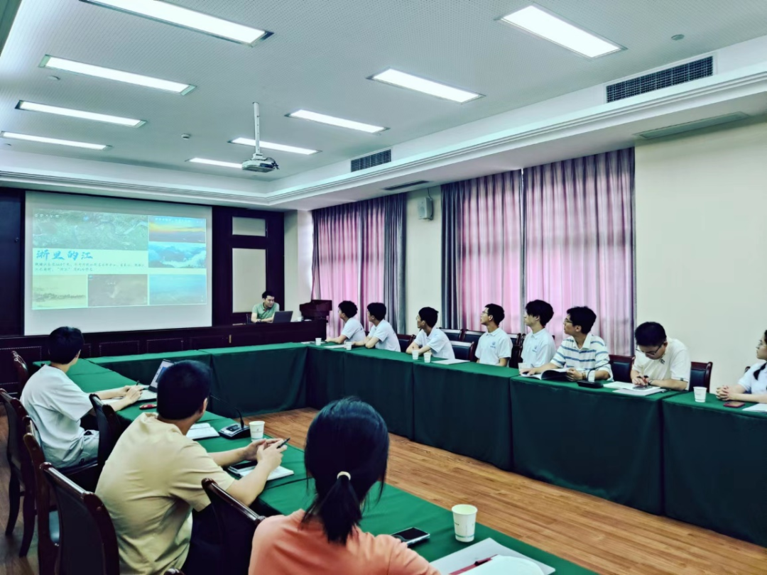 浙江省地矿勘察院有限公司助理工程师闫成龙向实践队师生介绍地质灾害风险调查评价流程