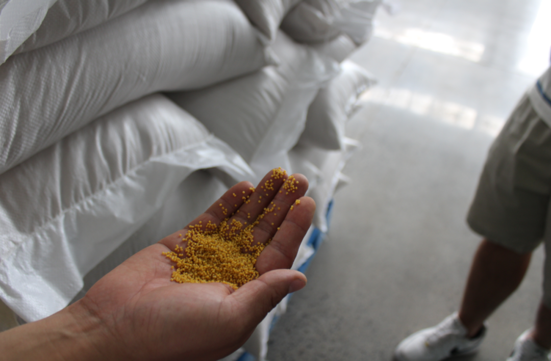 图为工作人员向实践队员展示加工后的小米
