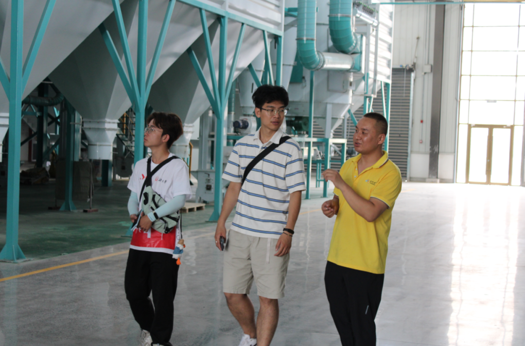 图为工作人员带领实践队员参观小米加工厂
