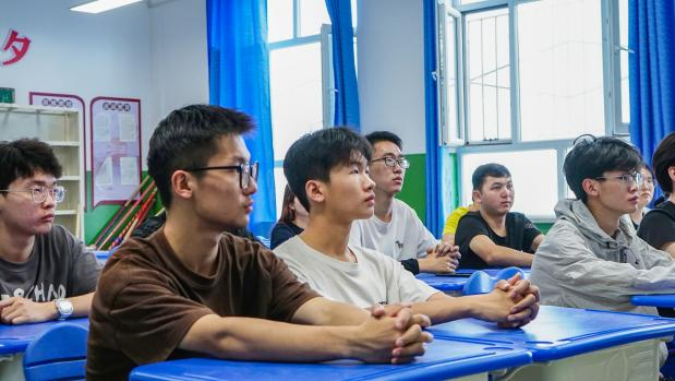 赴新疆巴音郭楞“践悟党的二十大·携手共绘同心圆”暑期社会实践队在焉耆县第一中学知性楼4楼高三(五)班隆重举行了临时党支部成立大会暨主题教育党课。实践队指导教师韩树鹏担任临时党支部书记,实践队志愿者预备党员张博晨担任组织委员,实践队志愿者预备党员陈晓龙担任宣传委员。