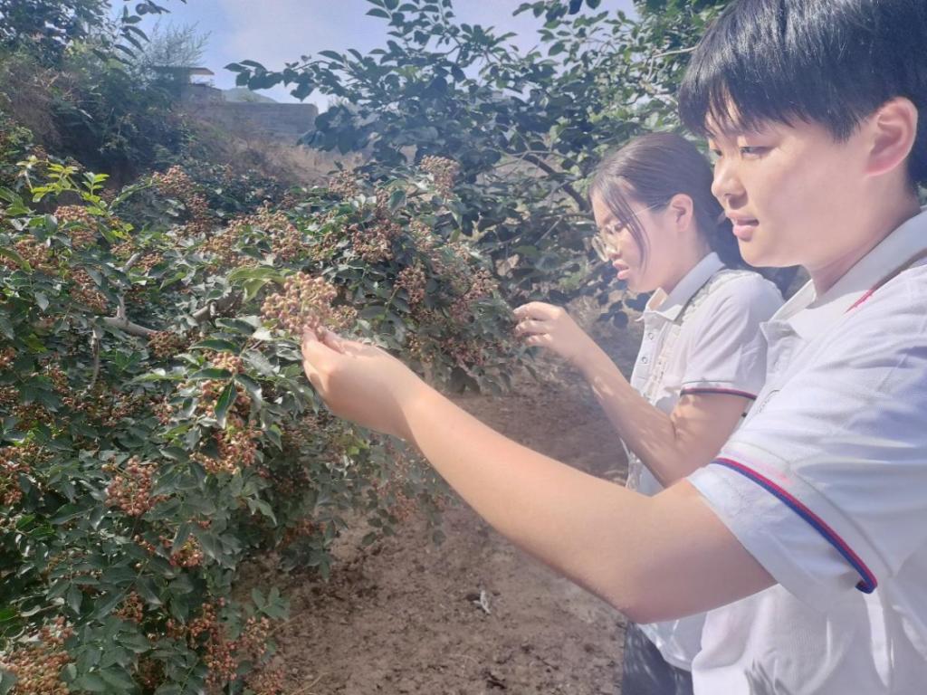 赴陕西渭南“乡村振兴·服务三农”暑期社会实践队前往富平县花椒种植园,对当地的花椒产业进行实地调研。实践队深入花椒种植园区,参观花椒生产车间,了解花椒生产过程,调研花椒产业发展现状。