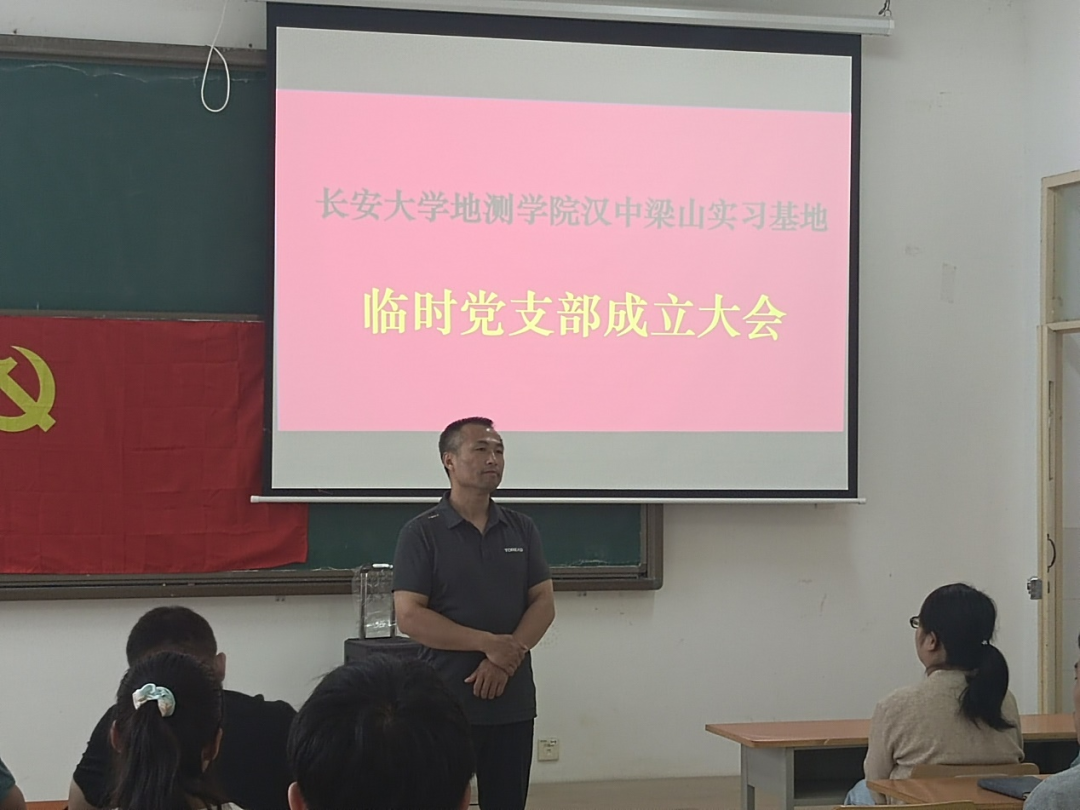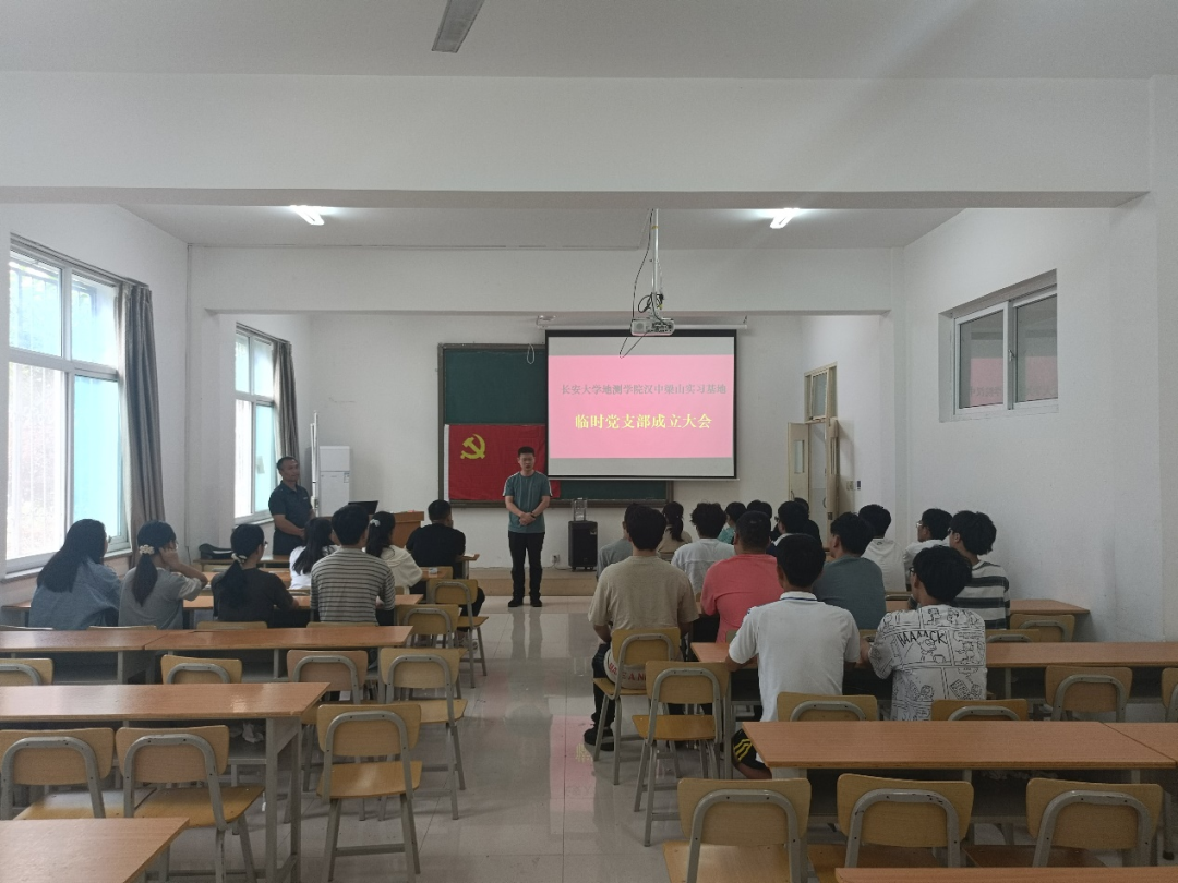汉中梁山实习基地临时党支部召开成立大会,基地全体师生党员参与。本次大会由地质工程系党支部书记陈新建老师主持。