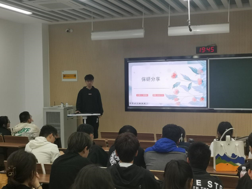 2019级李明杰同学给我们分享了许多保研相关知识和他保研的宝贵经验。李明杰同学从推免类型、推免流程、个人定位、科研竞赛、院校选择以及夏令营准备工作这几个方面进行分享。他强调了科研竞赛是推免中锦上添花的部分,在大一大二的时候要积极参加各种科研竞赛,同时也对保研院校、夏令营如何取得offer问题进行了重点分析。在探索知识的漫漫长路之中,李明杰同学鼓励学弟学妹要勇于坚持,不断突破。