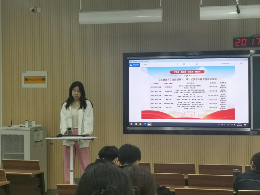 本科生第七党支部“党旗领航·‘研’续梦想”主题党日活动在修远2206教室举行。此次活动邀请了党支部书记苗行生老师为我们解读保研政策,同时也邀请了李明杰同学、解孟泽同学和王润涵同学来为我们分享他们保研和考研的相关知识和宝贵经验。