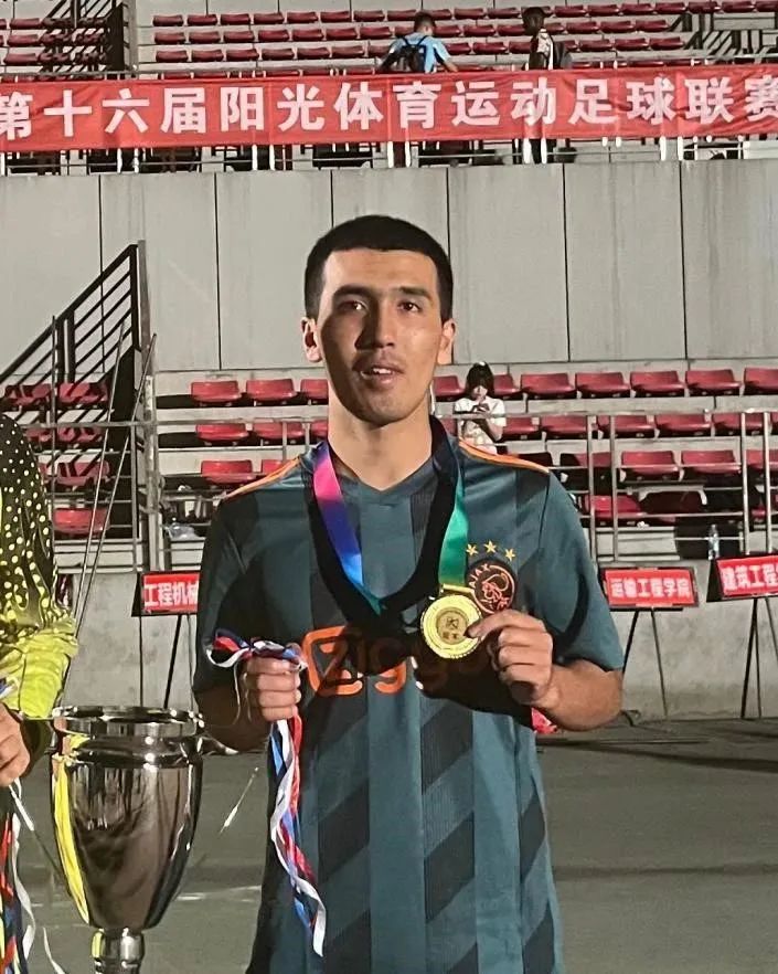 艾合麦提江·亚森,男,维吾尔族,共青团员,2020级安全工程专业本科生。学业成绩位于本学院少数民族学生第二名,维吾尔族第一名。曾获得陕西省大学生足球联赛“中国银行杯”冠军,陕西省第十七届运动会第四名,在校园联赛中多次获得前三名,曾被评为优秀裁判员,在第十六届阳光体育运动会中获得冠军,十五届阳光体育运动会第三名,在2020届新生杯中获得亚军,并选入最佳阵容,“石榴籽”杯足球联赛第一名等成绩。