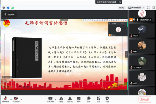 同时,为了让同学们能够更好的了解中国共产党取得如今成就的艰辛与不易,坚定同学们抗疫的信心,学生会各部门组织了红色观影谈体会,红色诗词赏析等特色活动。进行了影片《八佰》的观看以及毛泽东诗词的朗诵与赏析。一方面加强了同学们的红色精神学习,一方面为各位同学制动隔离生活增添了色彩,帮助同学们凝聚信心,坚定打赢抗疫阻击战的信念!