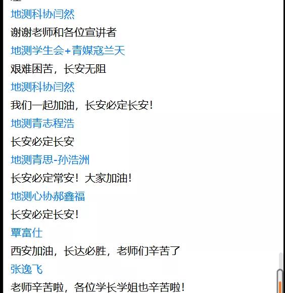 各奋愚公之愿,即可移山;共怀精卫之心,不难填海。病毒可以隔离,但温暖不会消散。众志成城,戮力同心,通过此次团日活动,我们对这场疫情有了更深的了解,对所有参与战“疫”工作的英雄们生出了更深的敬意,坚定了聚力战“疫”的决心,更清晰地认识到了共青团员的责任与担当。我们坚信:没有一个春天不会到来,胜利之时指日可待,同时让我们深知自我责任,更乐于参与志愿活动,我们坚信,长安必将常安!