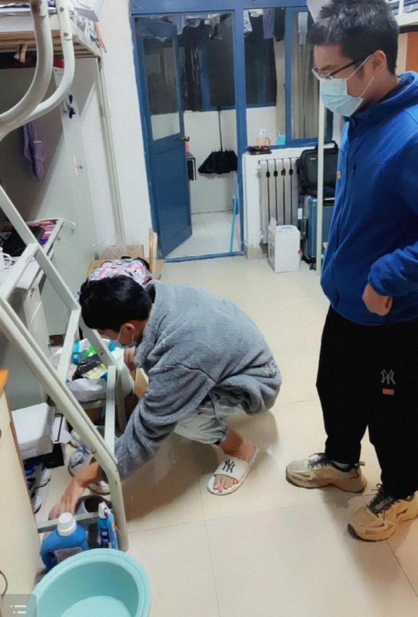 在宿舍内务指导的过程中,学长学姐们着重为同学们讲解了在宿舍卫生安全中需要注意的问题,比如:合理使用挂钩、置物架等小物品可以极大提高空间利用率;牙具的摆放要远离洗手盆,避免洗手时污水溅入;宿舍用电器在无人时要断电,特别是饮水机在水桶清空时要及时关闭,避免“干烧”。同时,也叮嘱同学们要深入落实学院疫情防控工作常态化要求,按时开窗通风、倒垃圾,保持宿舍的整洁和卫生,养成良好的生活习惯。2021级同学们则在学长学姐们的指导下对自己的宿舍进行了即时的内务整理。