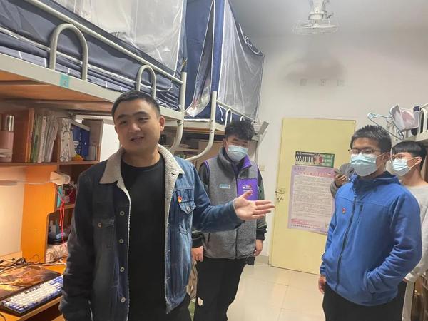 最后,杨海城老师强调:宿舍是大学生在校期间学习、生活和人际交往的重要场所,学生党员要走进宿舍,敢于亮身份,作表率,以点带面,点面结合,帮助广大同学提高卫生与安全意识,营造健康文明、积极向上的宿舍环境。