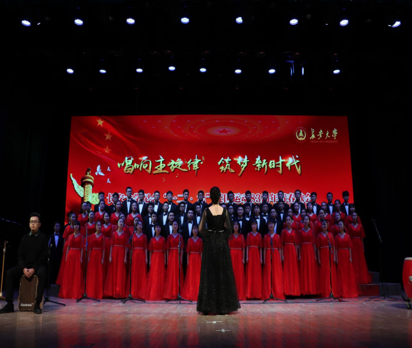 歌会的舞台上,滑书记,邵老师,苗老师,段老师激昂的朗诵深情地表达了地测学子的心声。一曲《我爱你中国》是地测学子对祖国由衷的表白。合唱演员们队形整齐,形象端庄。优美的和声浅吟低唱,带来美的感受。合唱的主旋律时而诉说对祖国的感恩之情,时而激昂地表达内心对国家的赞美。在潘老师的指挥下将真挚的情感发挥地淋漓尽致。独具特色的鼓声充满韵律,铿锵有力地表达自豪之情。合唱高潮处,十二面旗帜遍布全场,挥舞间诠释着每名同学的骄傲感。整场演出精彩异常,搏得了在场评委和观众的喝彩,并以94.33分的优异成绩斩获第一!