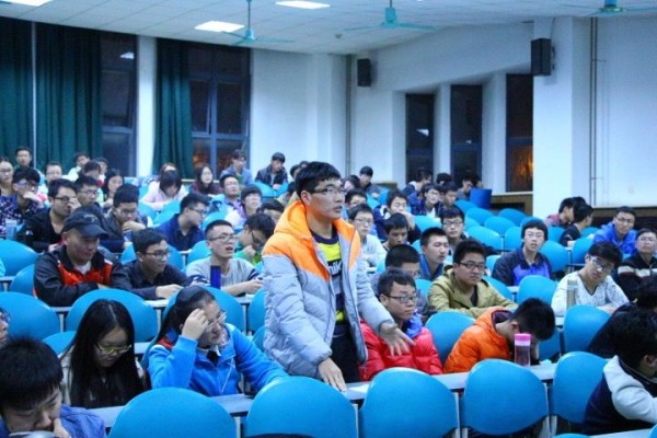 在北斗领域的特色研究成果及“北斗杯”全国青少年科技创新大赛的具体情况三个方面为本科生作了一场精彩的报告。整个过程中,黄文观副教授语言风趣幽默、报告内容深入浅出,让同学们在轻松活泼的气氛中学习到许多与卫星导航系统相关的知识。同学们还就比赛相关问题进行了提问。