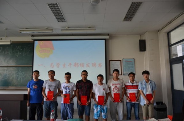 本次会议共五项内容,第一项为学生干部颁发聘书。首先潘迎老师对本学期学生干部工作做了总结和点评,对各学生组织及学生干部的工作给予了肯定。随后,滑思忠副书记和潘迎老师为学生干部颁发了聘书。学生干部代表于欣欣同学发言,向学弟学妹们介绍了自己的学习工作经验与体会。