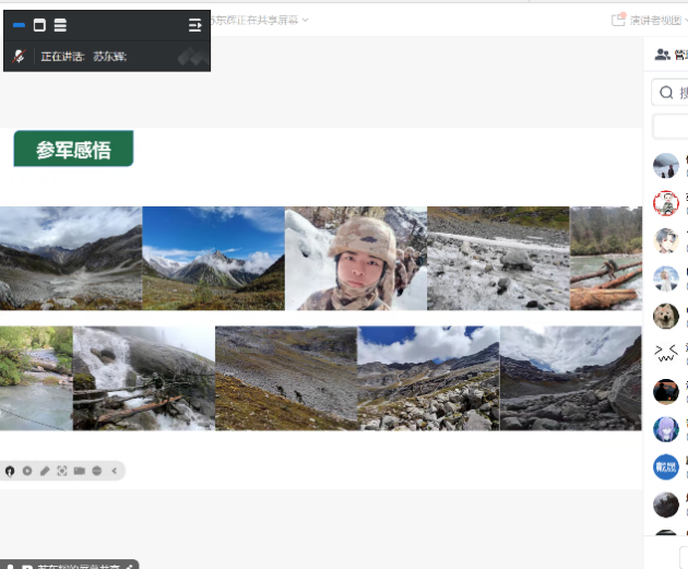 接下来,苏东辉同学向大家详细介绍了入伍的流程及时间节点,针对同学们比较陌生的报名时间、报名方法,以及征兵体检、政治审查、役前训练,进行了详细的讲解。同时,他也向大家分享了自己在西藏林芝地区祖国边防第一线巡逻守边的独特经历和感悟,他表示:“部队磨练了我的心志与体魄,增强了我对于国家主权神圣不可侵犯的理解”。