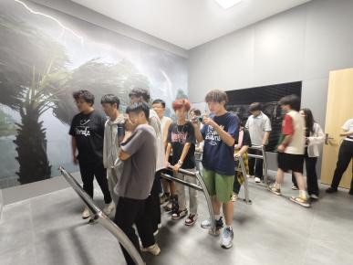 随后,来到灾害模拟体验环节。科普馆运用科技手段打造逼真的地震、火灾、洪水等模拟场景。在地震模拟体验区:警报响起,地面摇晃、灯光闪烁、房屋模型发出声响,大家按所学知识迅速躲避,感受地震的紧张与危险;大风模拟区用两台大功率风扇模拟四级大风,同学们感受强风威力,学习强风环境下的避险方法。此外,活动还涉及人为灾害学习,如骑行、开车等危险行为,地铁意外逃生等。讲解员引导同学们模拟避险,同学们积极参与互动、踊跃提问,现场气氛热烈有序。