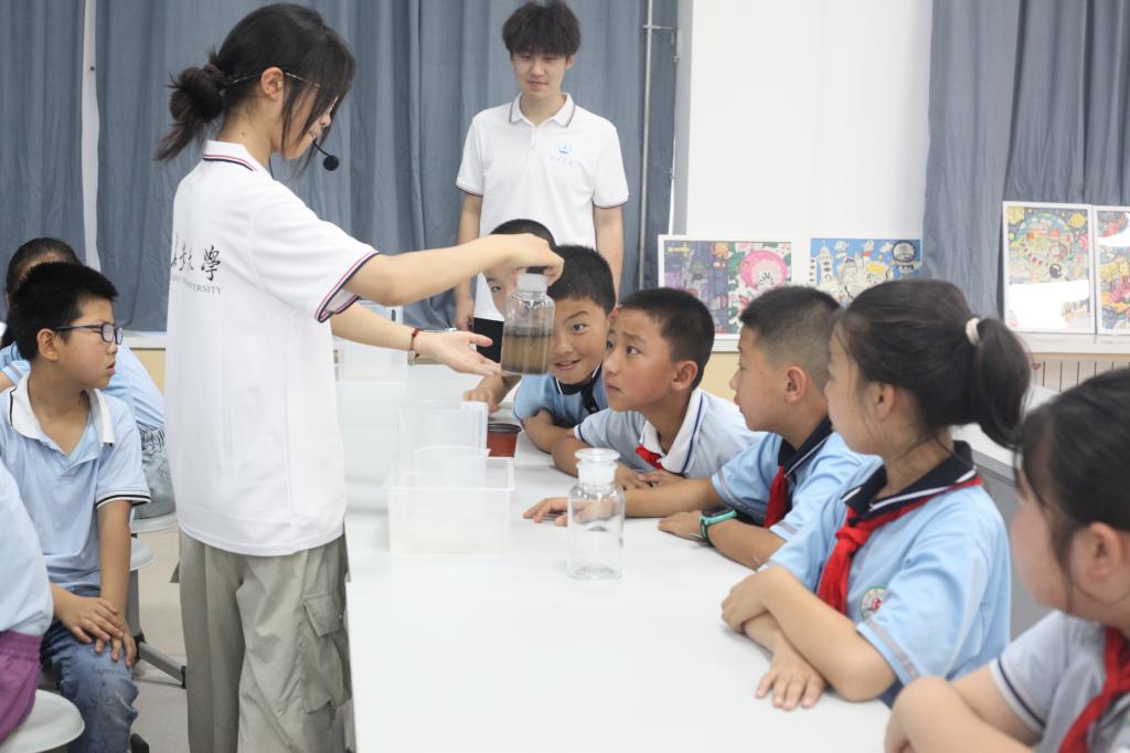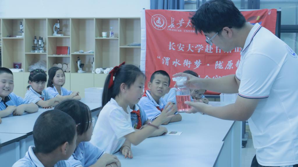 “渭水衔梦·陇原耕心”实践队携手北辰小学12名“小小讲解员”,并联动华东理工大学“山海情·艺路同行”支教团,以展板、实验同行,为200余名师生和群众奉上“科普一日营”。大学生放下话筒,小学生拿起麦克风;两校跨地域协同,共绘教育扶贫同心圆——科学的种子,正在黄土塬上生根发芽。
