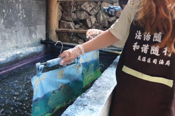 队员体验非遗豆染技艺