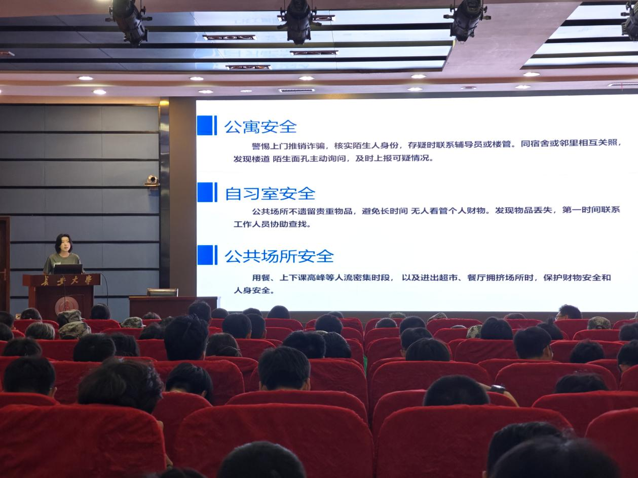 程馨结合高校安全案例,系统讲解了大学生在校期间需要注意的各项安全问题。她通过真实案例剖析,向新生们揭示了各类安全隐患的危害性,并提供了实用的防范措施和应对方法。她强调,大学是人生新的起点,新生们要尽快适应大学环境,将安全意识内化于心、外化于行。讲解过程中,同学们全神贯注、认真聆听。不少同学表示自己深刻认识到安全的重要性,也学到了许多实用的安全防范技能,未来将把安全知识运用到实际生活中,为自己的大学生活筑牢安全防线。