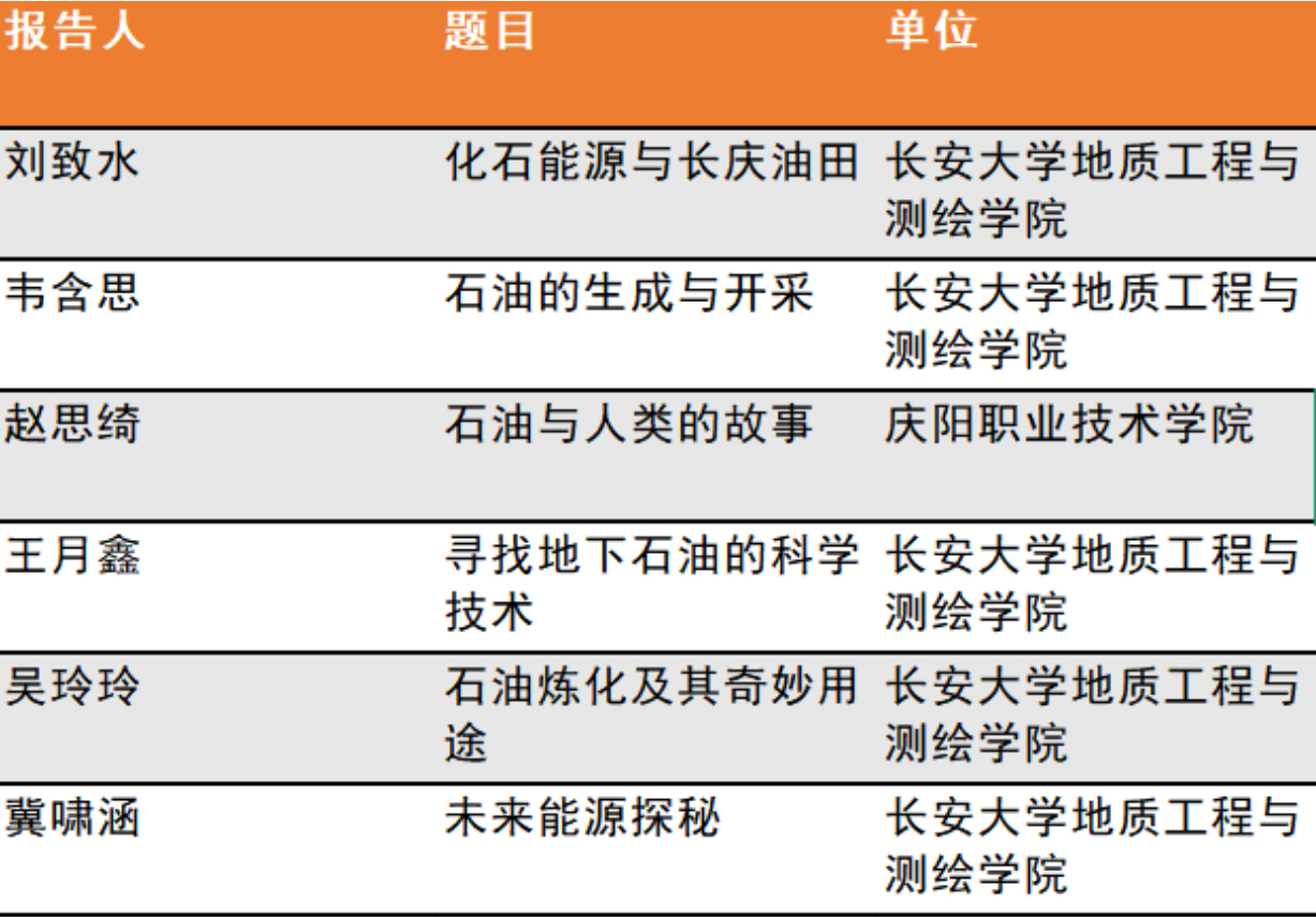 师生参加科普讲座内容列表