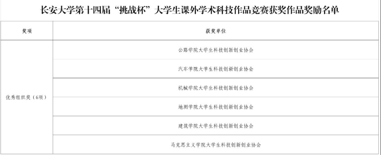 第十四届 “挑战杯” 大学生课外学术科技作品竞赛优秀组织奖。