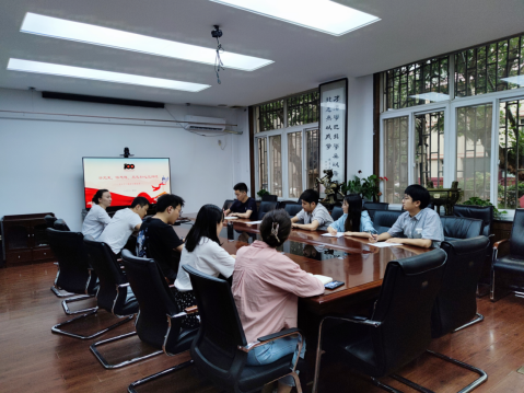 会议室为学院全体专兼职辅导员讲授题为“学党史、悟思想,不忘初心立师德”专题党课。