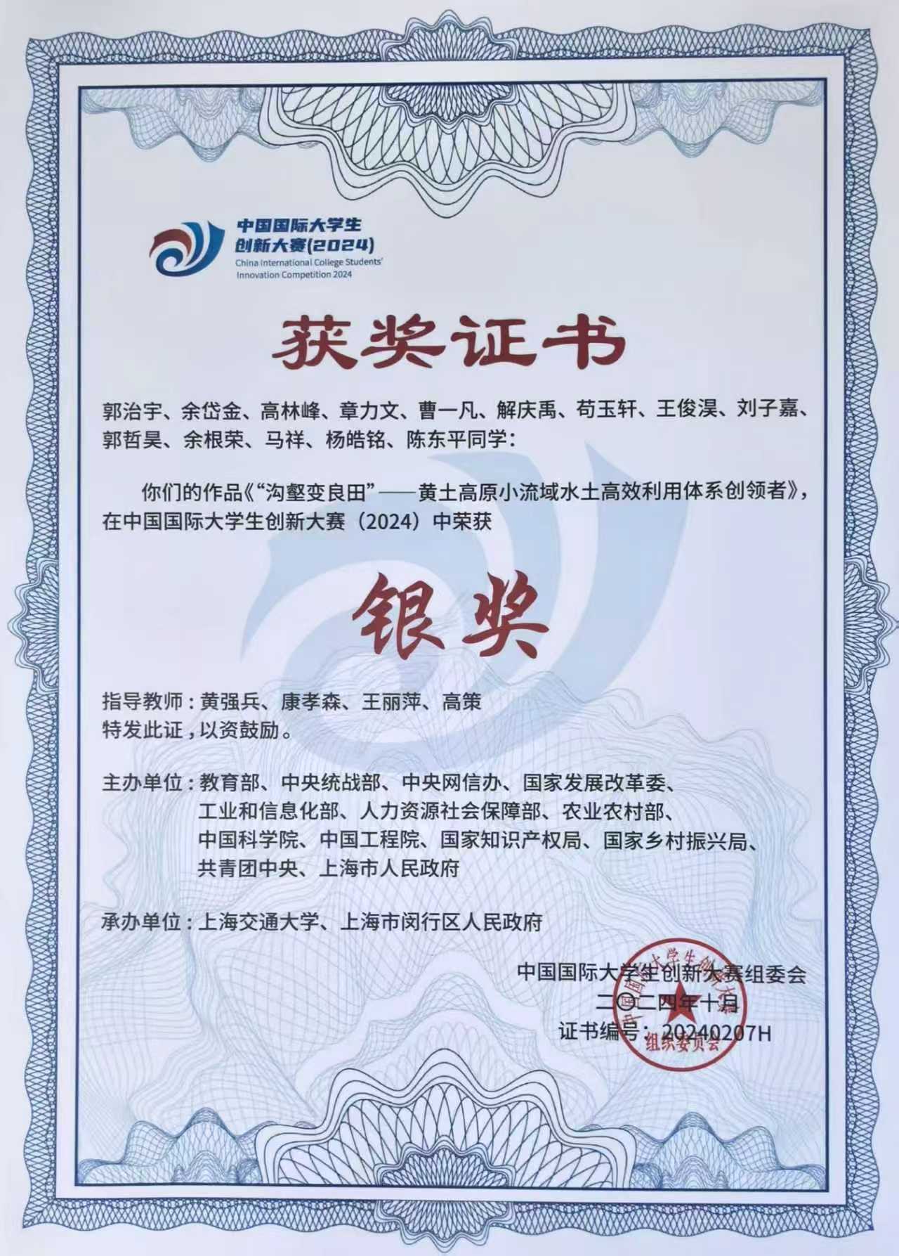 地质工程系学生团队凭借《沟壑变良田—黄土高原小流域水土高效利用体系》项目,经过激烈角逐,从全球514万个项目中夺得国家级银奖。本届大赛共吸引2083.6万人次报名,覆盖153个国家和地区的5406所学校,是我国级别最高、覆盖面最广、影响力最大的大学生创新竞赛。该项目团队成员由郭治宇(项目负责人)、余岱金、高林峰、章力文、曹一凡、解庆禹、苟玉轩、王俊淏、刘子嘉、郭哲昊、余根荣、马祥、杨皓铭、陈东平等14位同学组成,指导教师为黄强兵教授、康孝森副教授、王丽萍和高策老师。该团队作为本届大赛中17直播