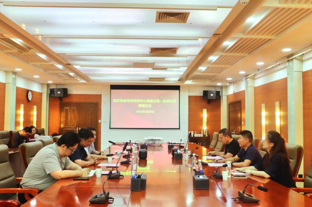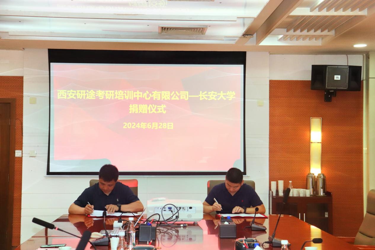 “研途”助学金捐赠签约仪式在北校区北辰行政楼会议中心第二会议室举行。西安研途考研培训中心有限公司总经理李翔翔、校办主任唐美伦、研途考研长大校区校长白磊乐,17直播