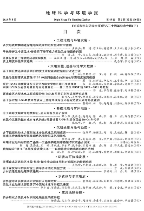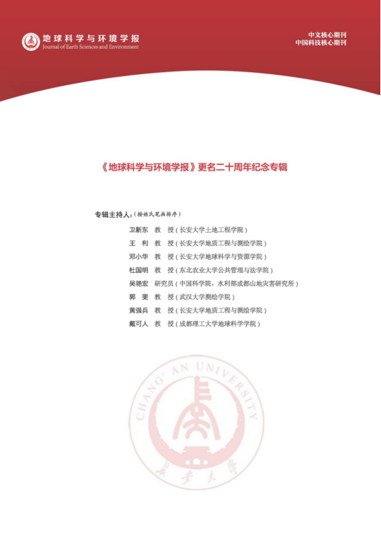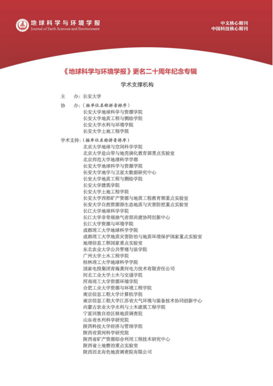 、东北农业大学、成都理工大学等高校,中国科学院地质与地球物理研究所、中国科学院水利部成都山地灾害研究所、中国地质科学院矿产资源研究所、中国自然资源航空物探遥感中心等科研院所为本次专辑提供了重要学术支持。主编彭建兵院士,执行主编范文教授,副主编兰恒星、李振洪教授等编委以及关心学报发展的专家学者为本次专辑的成功出版提供了大量学术资源。