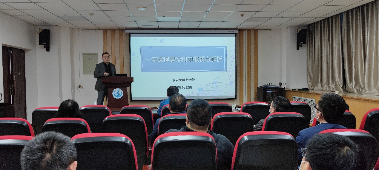 召开一流课程建设和申报推进会。会议邀请教授、博导,国家级一流课程、省级一流课程负责人陈永楠老师作报告。学院线上线下共计60余名教师参加会议。会议由副院长邵广周主持。