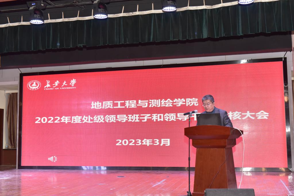 在南校区东院雁博园4楼研究生文化艺术中心大礼堂召开2022年度处级领导班子和领导干部年度考核大会。全体院领导班子与全院教职工参会,会议由院党委书记戴宏主持。