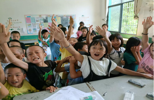 支教课堂中孩子们积极主动举手回答问题