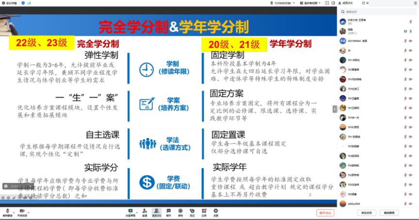各级本科生的毕业要求,针对2020和2021级、2022和2023级本科生分别进行了学校政策解读。李凯玲副教授着重强调了课堂出勤率的重要性,明确指出缺席课程超过三分之一的学生将不得参加该课程的期末考试,以此督促学生们保持高度的学习积极性和课堂参与度。高德彬老师则在会议中提到,17直播